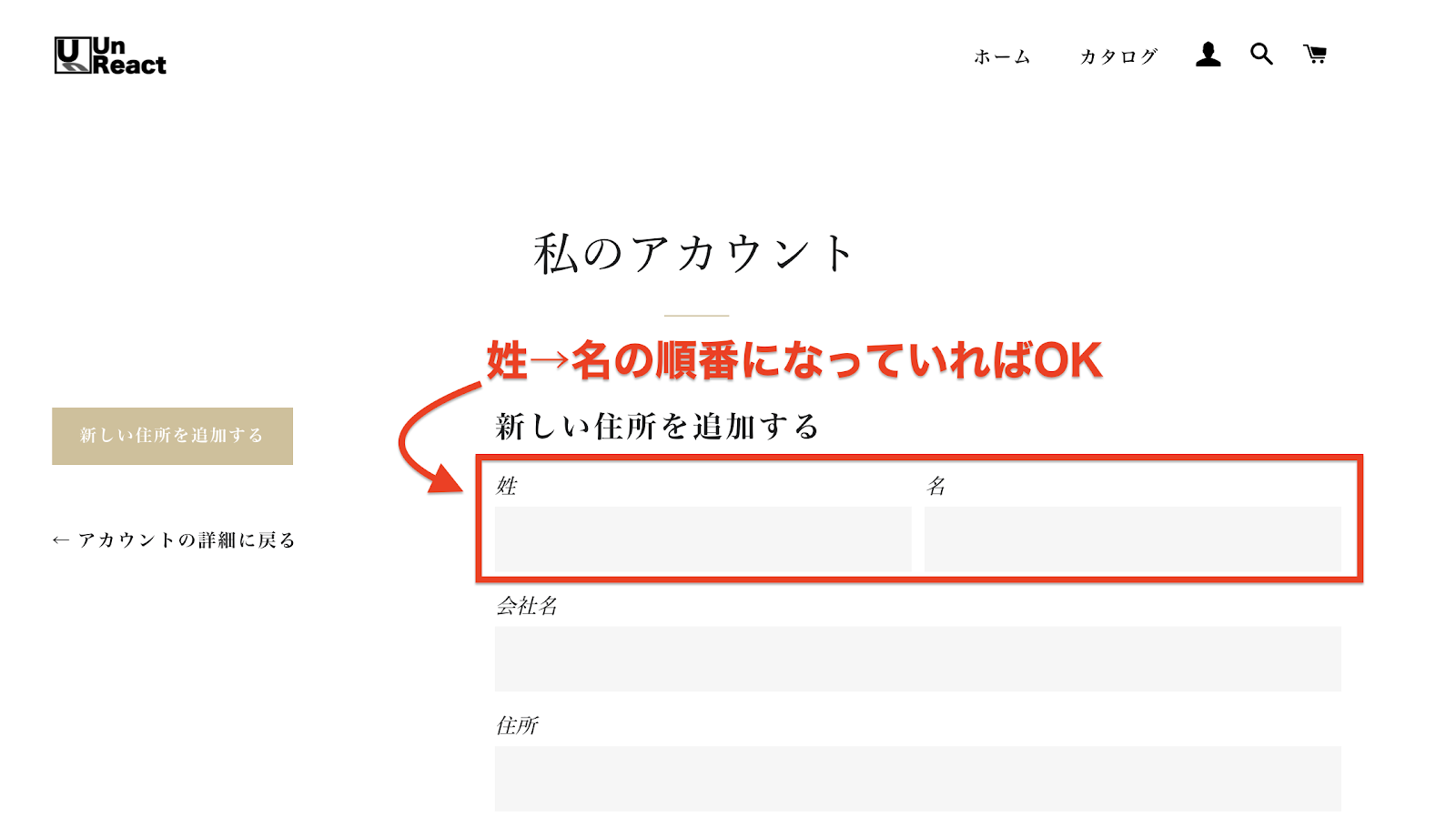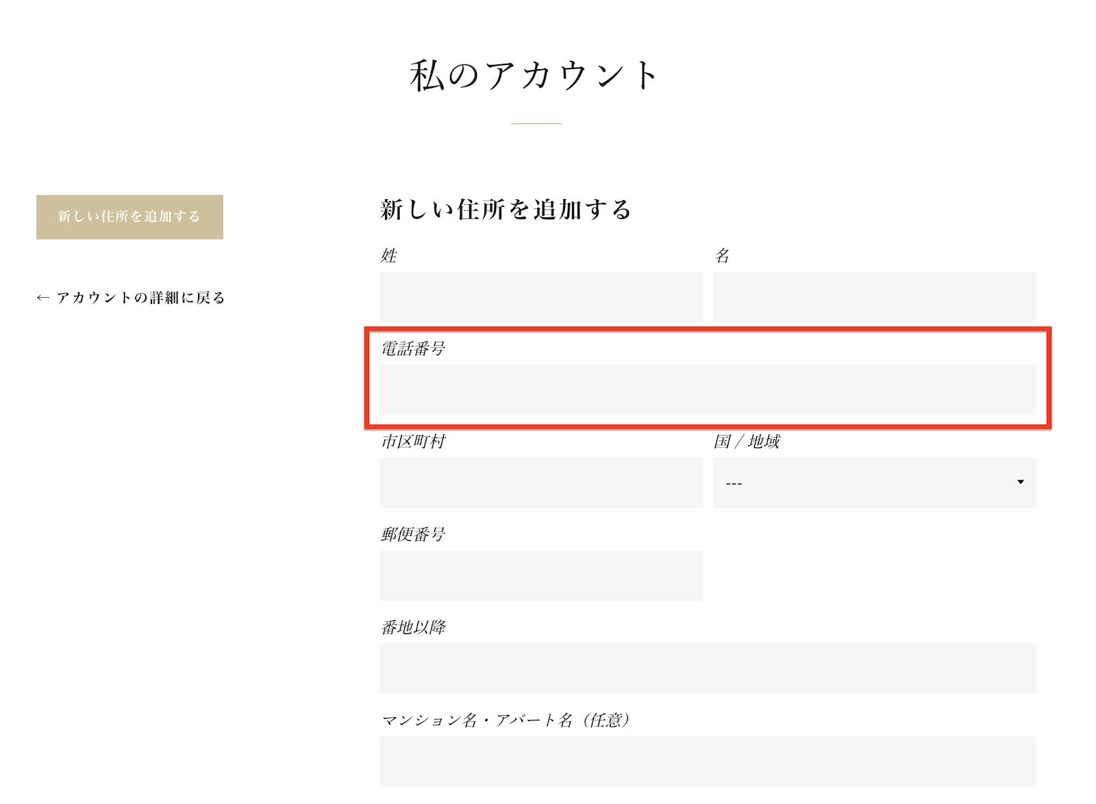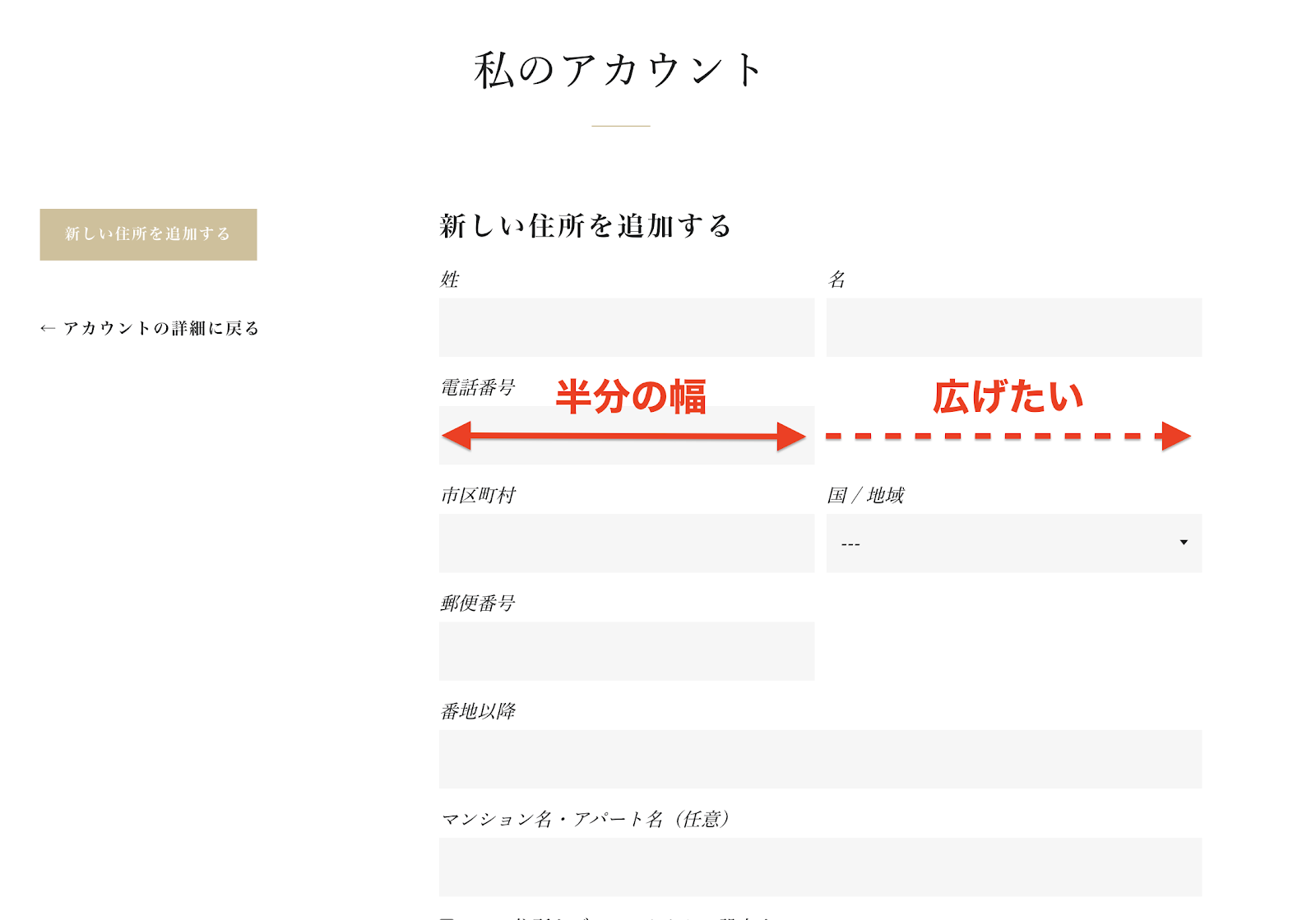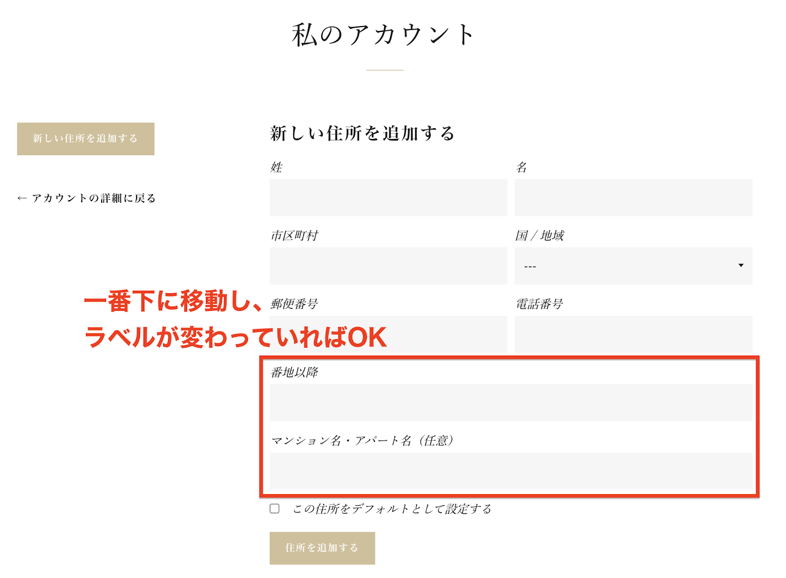 住所の入力欄を一番下に移動する