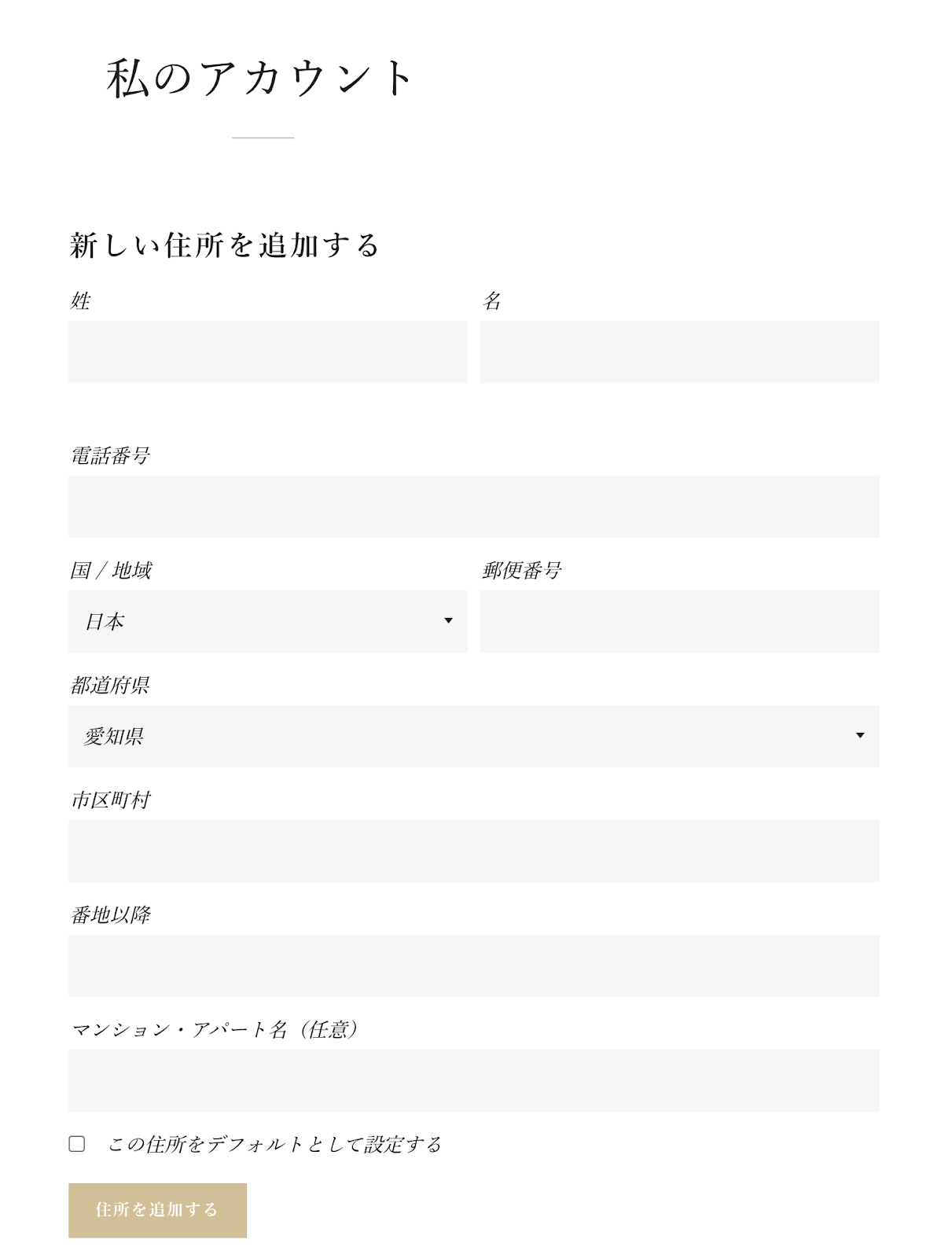このようなページが表示されるので、住所を設定してみましょう。必要な情報を入力したら、「住所を追加する」をクリックします。