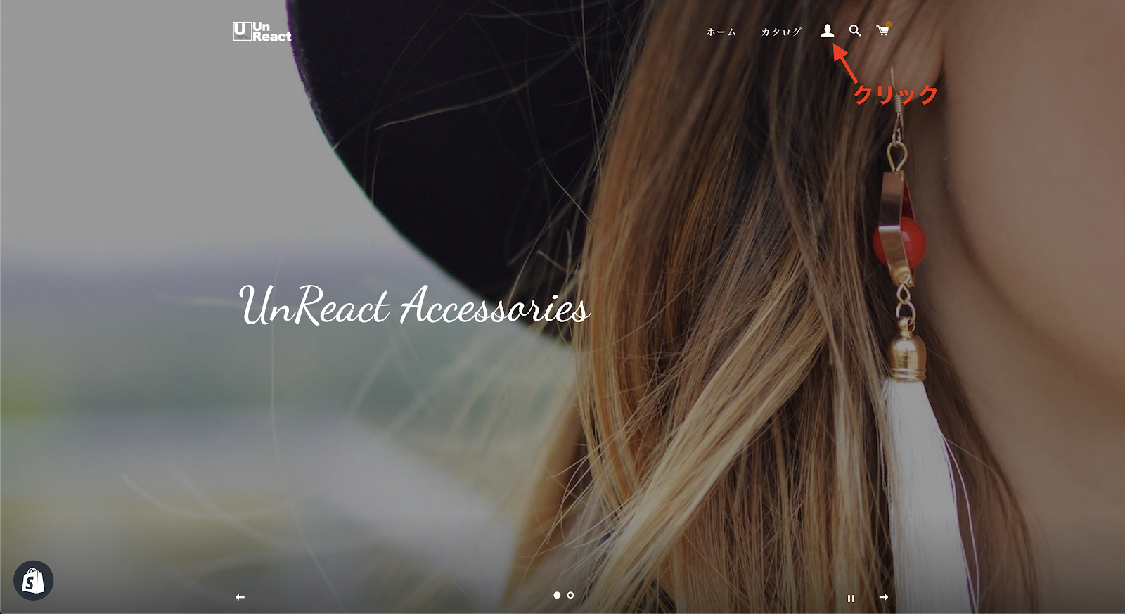次にアカウントページを確認します。アイコンをクリックしてください。すると、ログインページが開きます。