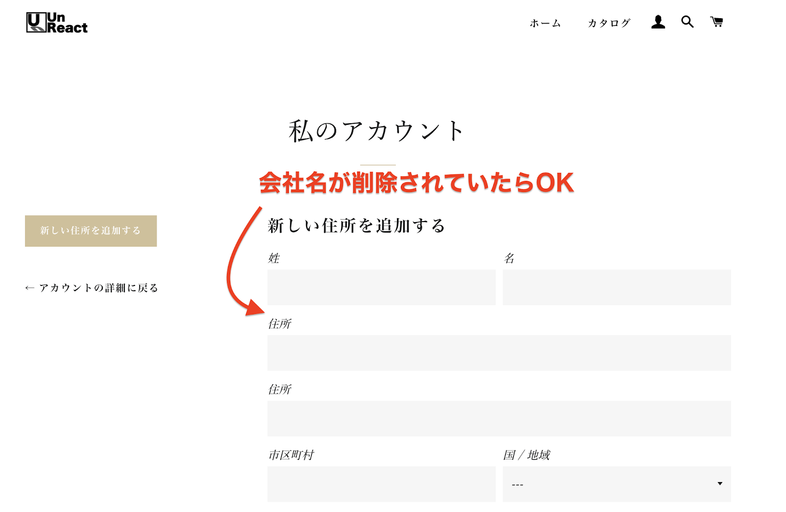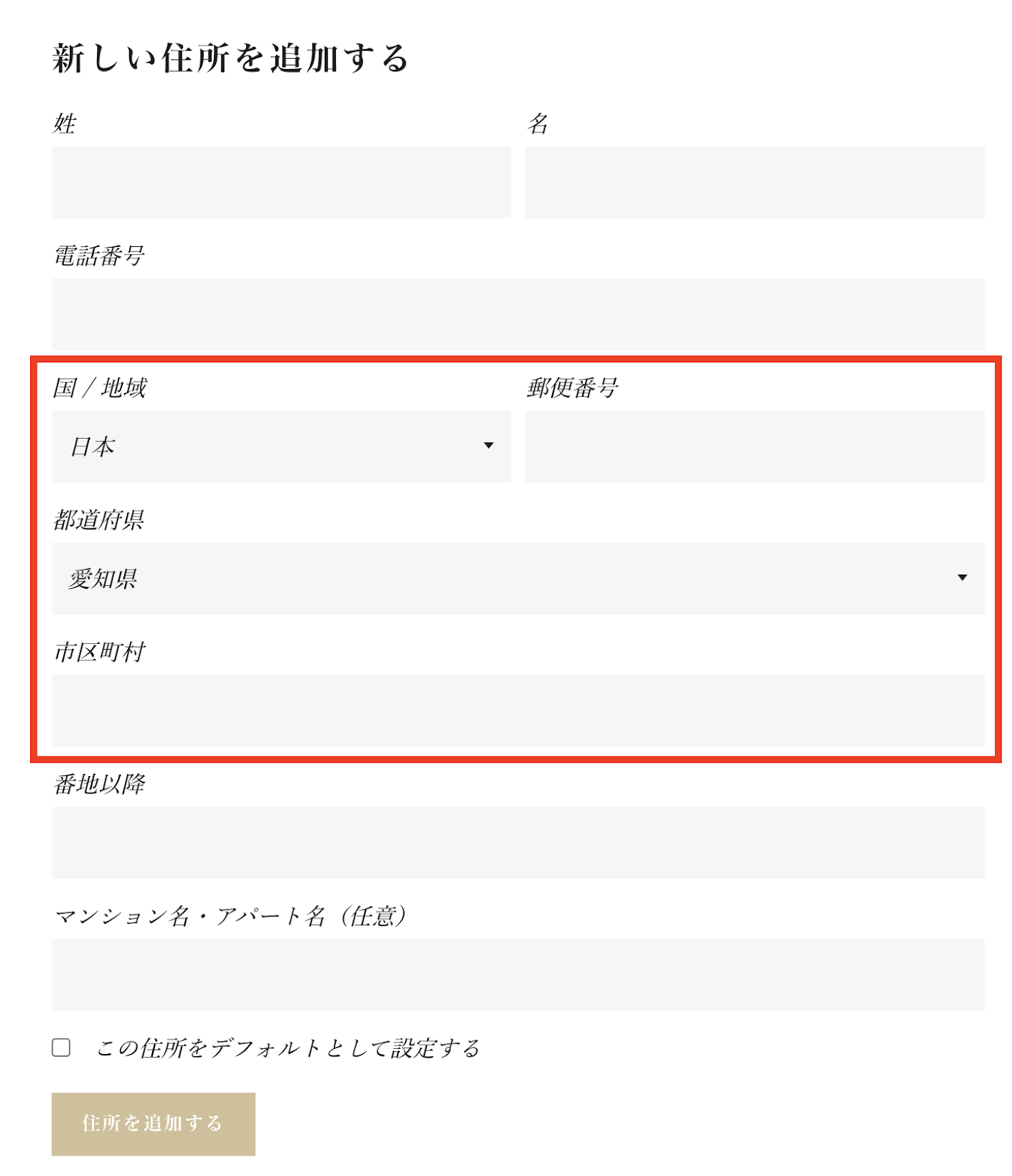 また、都道府県の入力欄が表示されない場合は、「国/地域」を「日本」に設定してみましょう。
