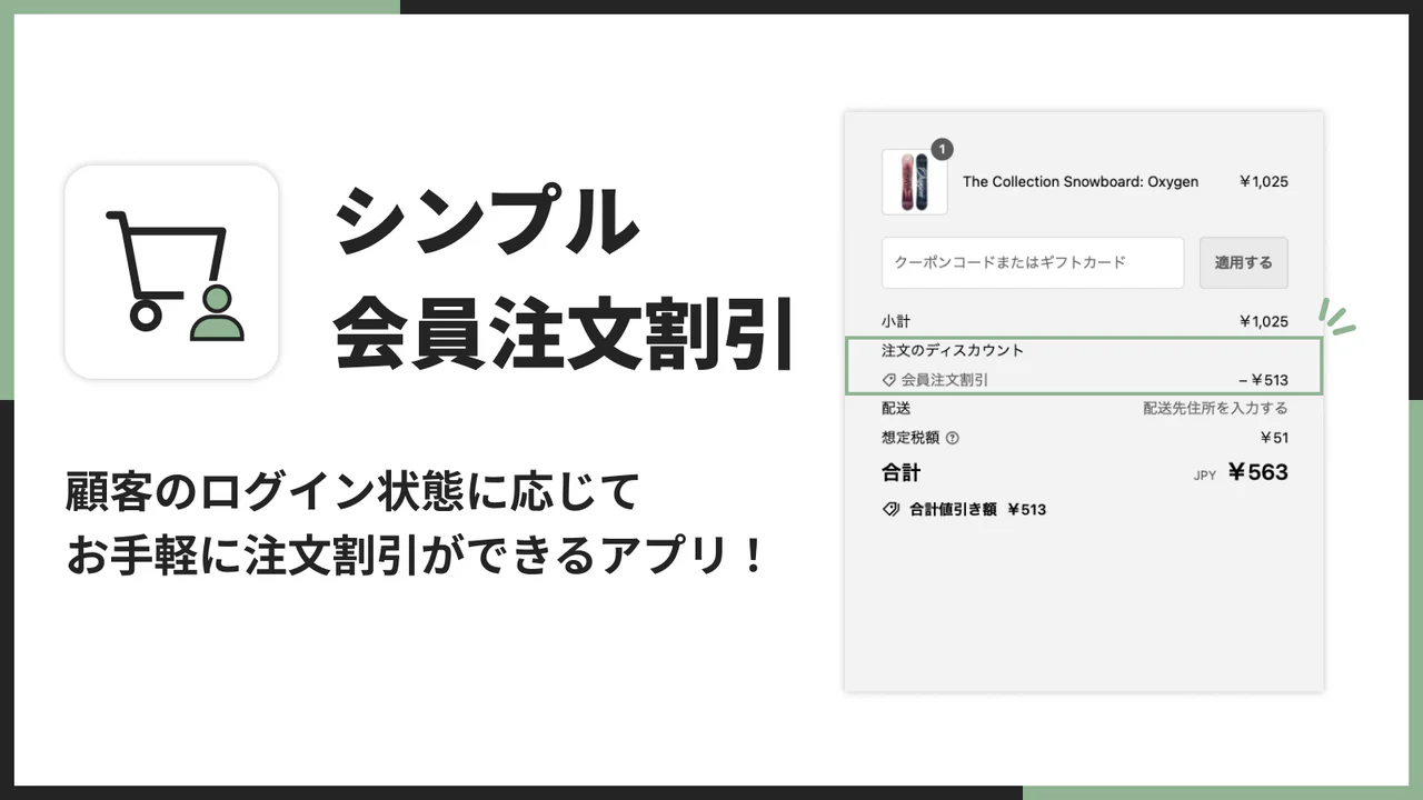 | ハイライト | 管理画面で直接操作 / 顧客タグに応じた注文割引 / 定額割引と割引率の選択可能 |