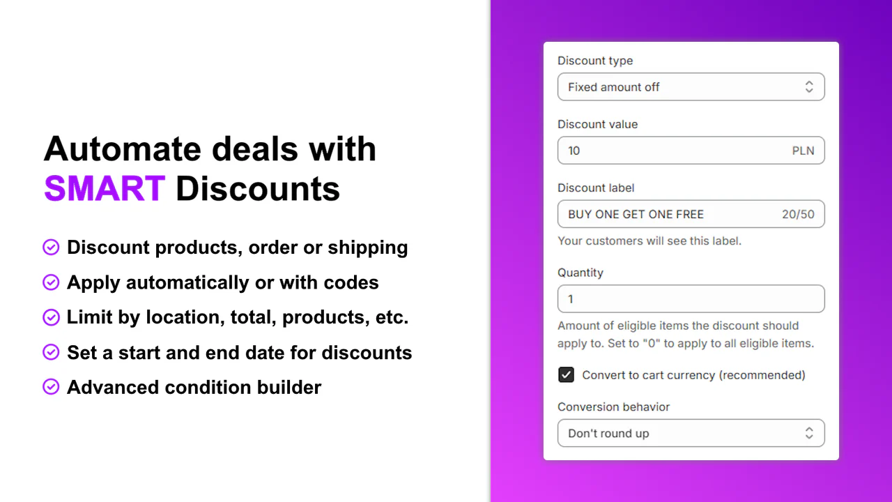 - SMART Automatic Discounts BOGO