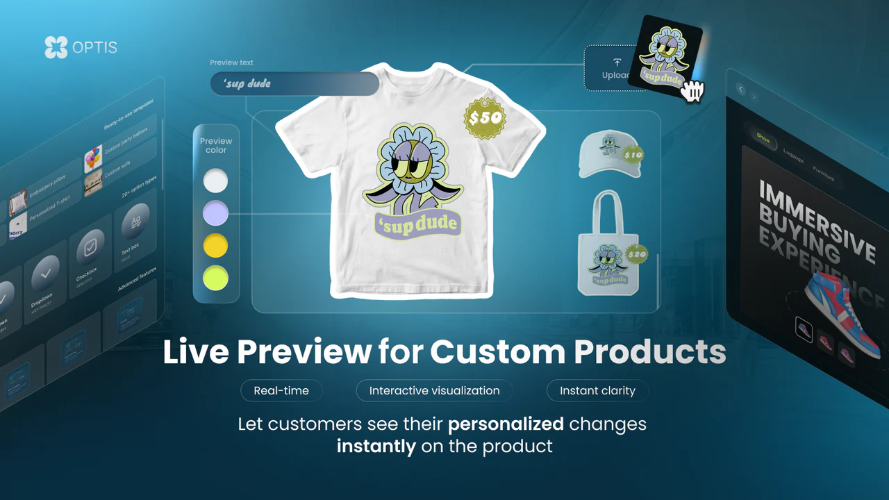 | OPTIS Product Options, Variant | パーソナライズ販売・アップセル | ライブプレビュー、ファイルアップロード、日本語対応 | 無料〜$19.99 |