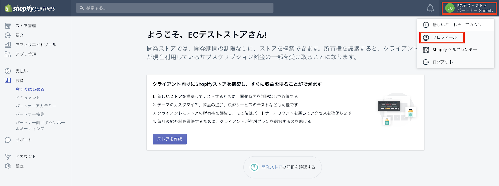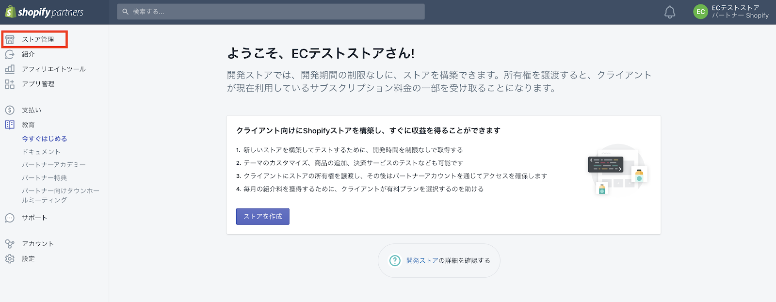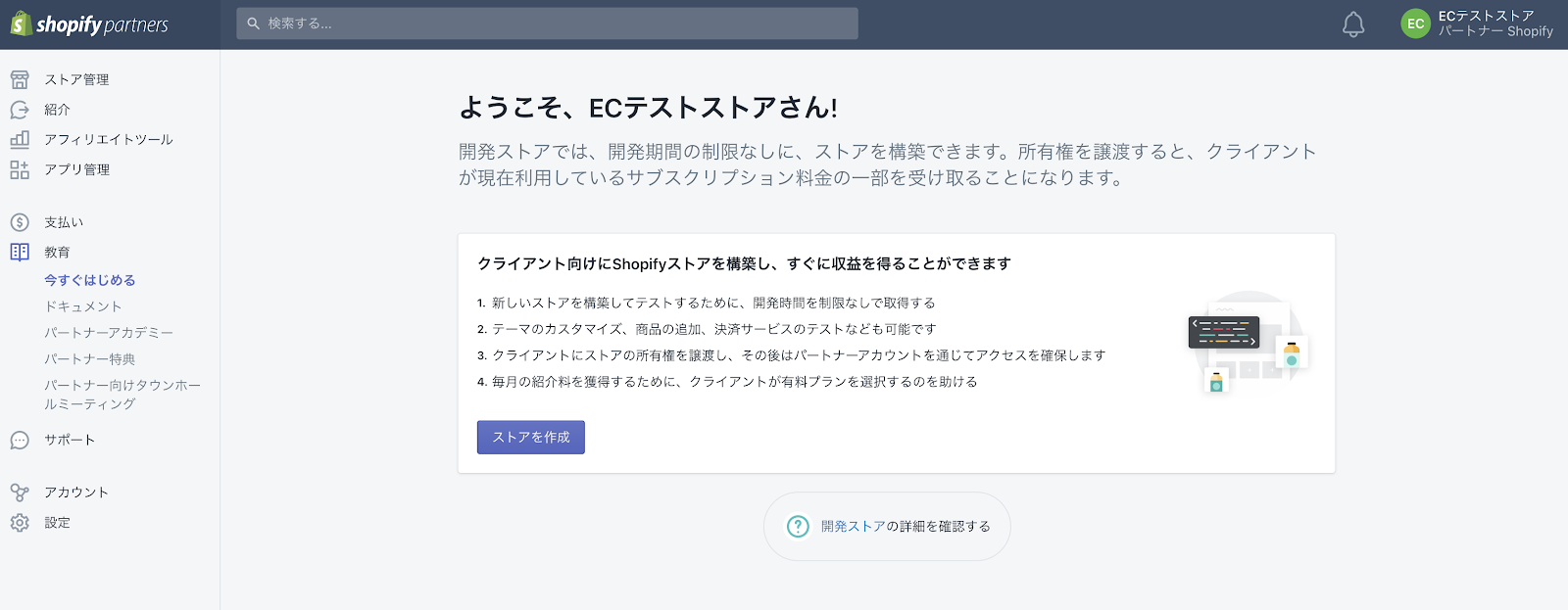 - Shopify パートナー管理画面(ダッシュボード)でできることを把握する