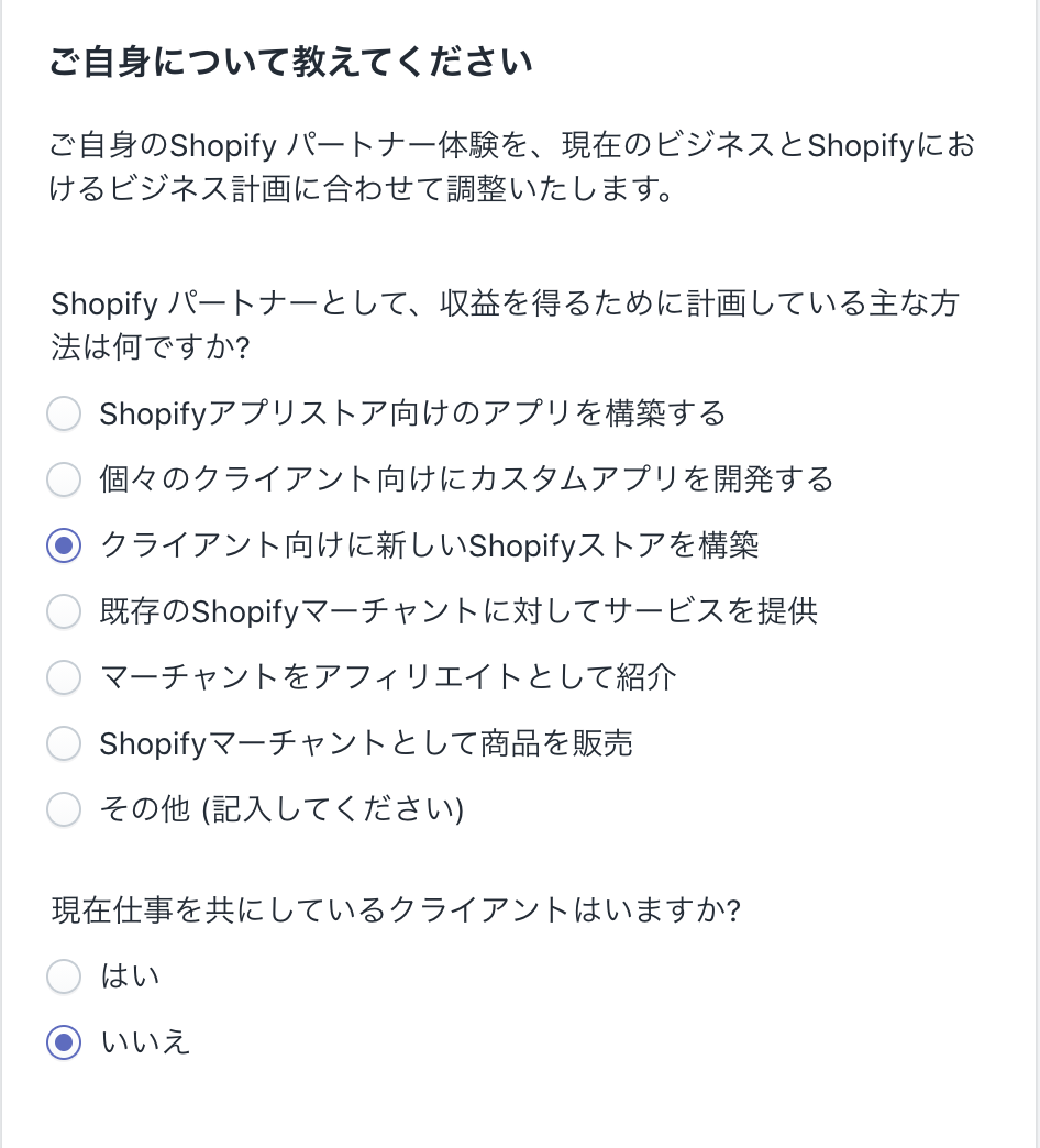 - Shopify パートナー管理画面のメニュー項目について理解できた