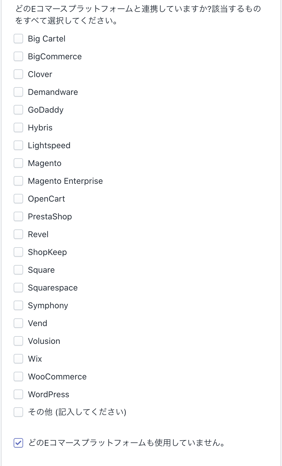 ここから、Facebook や楽天との連携、POS を導入することによる実店舗との連携を行うことができます。メジャーな連携方法については、ロードマップの後半の方で説明していきます。