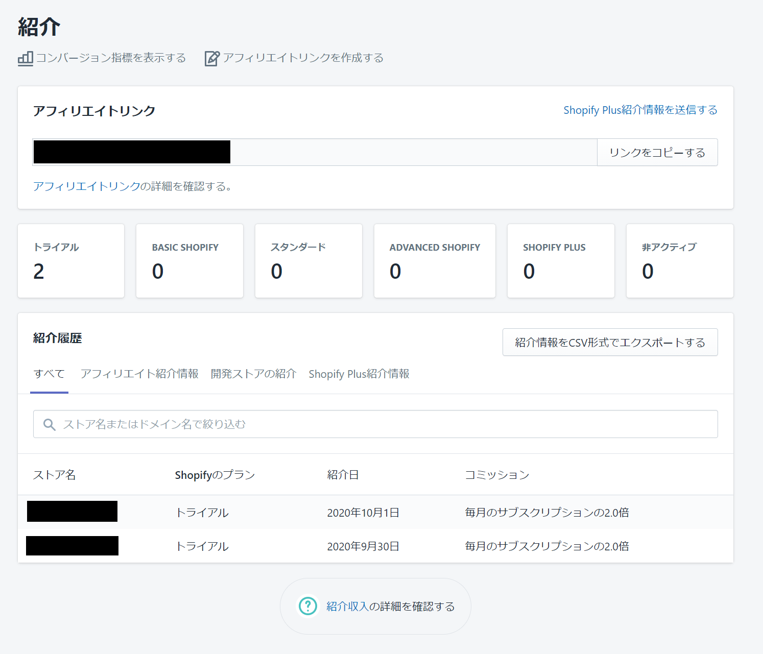 「紹介」の項目では、アフィリエイトの状況を確認することができます。