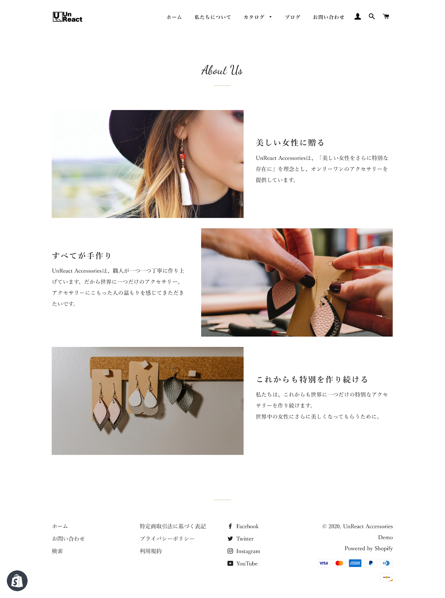 liquid ファイルを編集することで About ページを作成します。About ページには、ブランドの理念などを書きます。特にブランドイメージを大切にする企業なら、力を入れて作成するべきページです。